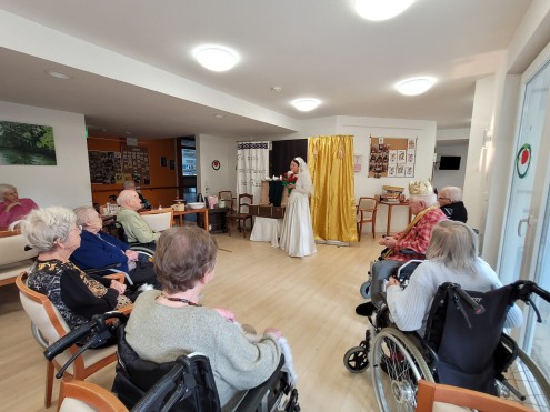 So kurz vor Ostern ließen es sich die Mitglieder des Ensembel Zirkus Frankordi nicht nehmen, unsere Bewohnerinnen und Bewohner im DAHEIM bestens mit artistischen Einlagen zu unterhalten. Der Zirkus Frankordi hat sich darauf spezialisiert, vor den Bewohnern von Pflegeheimen aufzutreten. Für unsere Bewohner war der Auftritt von Jennifer und Riccardo Frank mit ihren Kindern eine besondere Abwechslung. Ein Dankeschön geht auch an die Mitarbeiterinnen und Mitarbeiter des DAHEIM, die den Auftritt wunderbar vorbereitet und begleitet haben.
