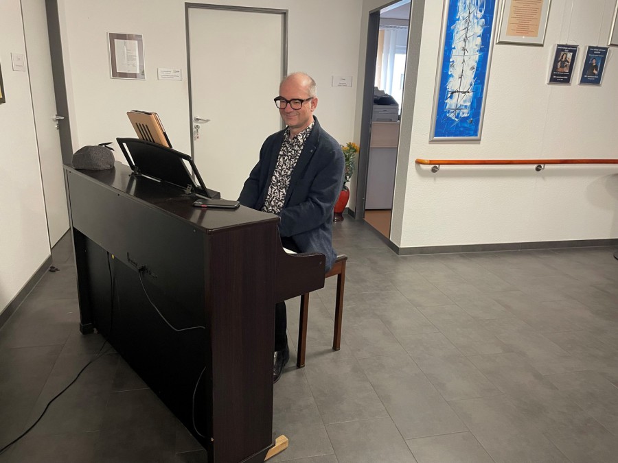Der Pianist und Musiklehrer Michael Stahl begeisterte auf Einladung des Pflegeheim DAHEIM am vergangenen Samstag unsere Bewohner und Gäste mit einem rund einstündigen Konzert am Klavier. Mit bekannten Musiken aus Filmen wie Frühstück bei Tiffany oder Over the Rainbow spielte er Lieder von Udo Jürgens und „Die fabelhafte Welt der Amelie“ zum Besten.