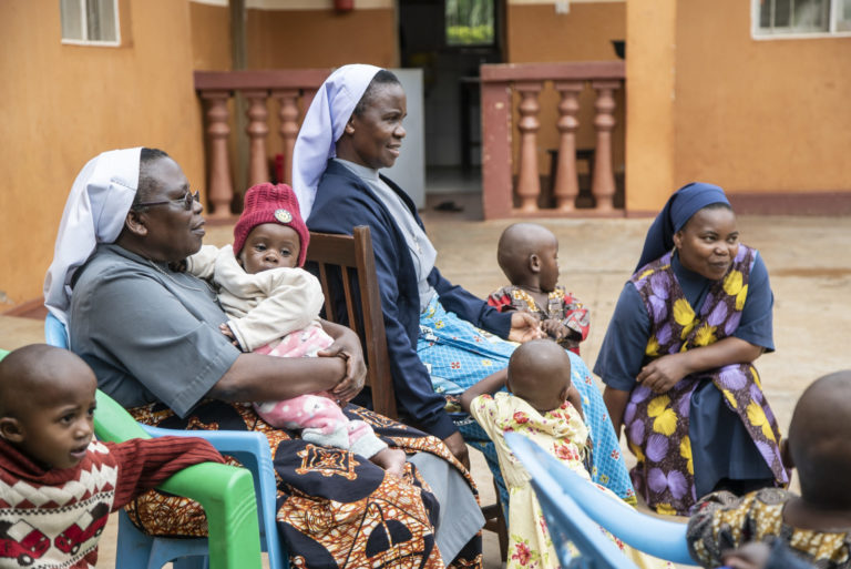 Aufgrund der aktuellen Not in Mbinga wurde 2014 das Waisenhaus St. Katharina eröffnet. Schon viele Jahren gab es das Haus St. Katharina, doch lange wurde es als Altenheim betrieben. Menschen in fortgeschrittenem Alter lebten dort zusammen und wurden von den Schwestern betreut. Einige der Bewohner*innen sind verstorben, andere konnten wieder in ihre Familien zurück und werden nun dort – wie es in Tansania üblich ist – in ihrem Lebensabend versorgt. Gleichzeitig wurden die Schwestern immer wieder gebeten, auf die aktuelle Not in der Region Mbinga eine Antwort zu geben. Durch die hohe Müttersterblichkeit sind häufig Säuglinge nach der Geburt nicht ausreichend versorgt. Mehrere Male wurden Säuglinge und Waisenkinder – teilweise heimlich – bei den Schwestern abgegeben. Deshalb wurde das bisherige Altenheim zu einem Waisenhaus. Aufgrund der hohen Nachfrage wurde das ehemalige Altenheim schnell zu klein, weshalb die Schwestern und Kinder 2018 in ein neues und größeres Gebäude am Stadtrand umzogen. Inzwischen leben 35 Säuglinge und Kleinkinder in St. Katharina.